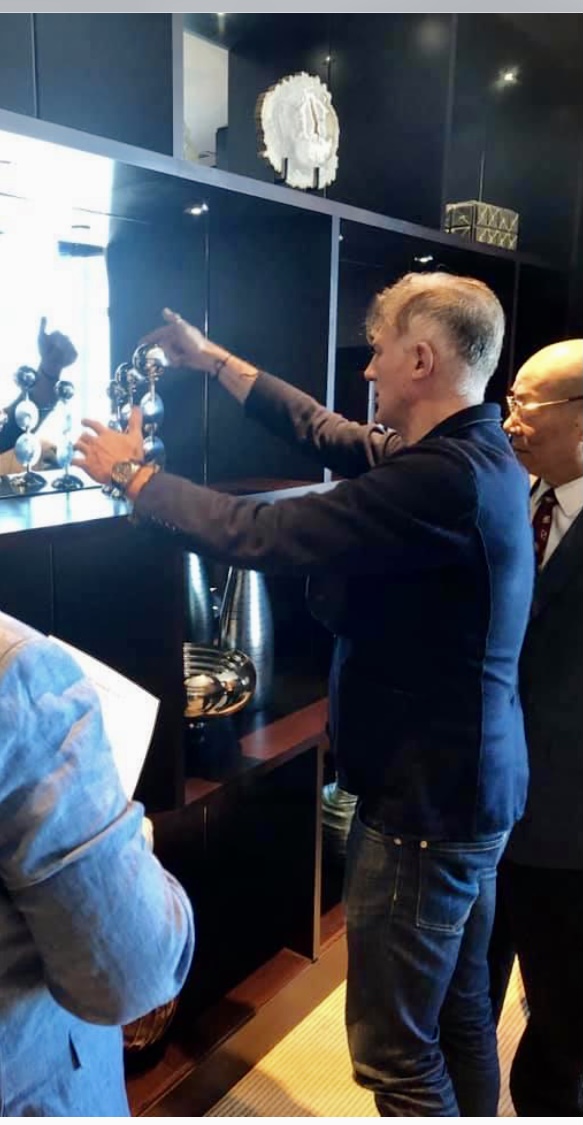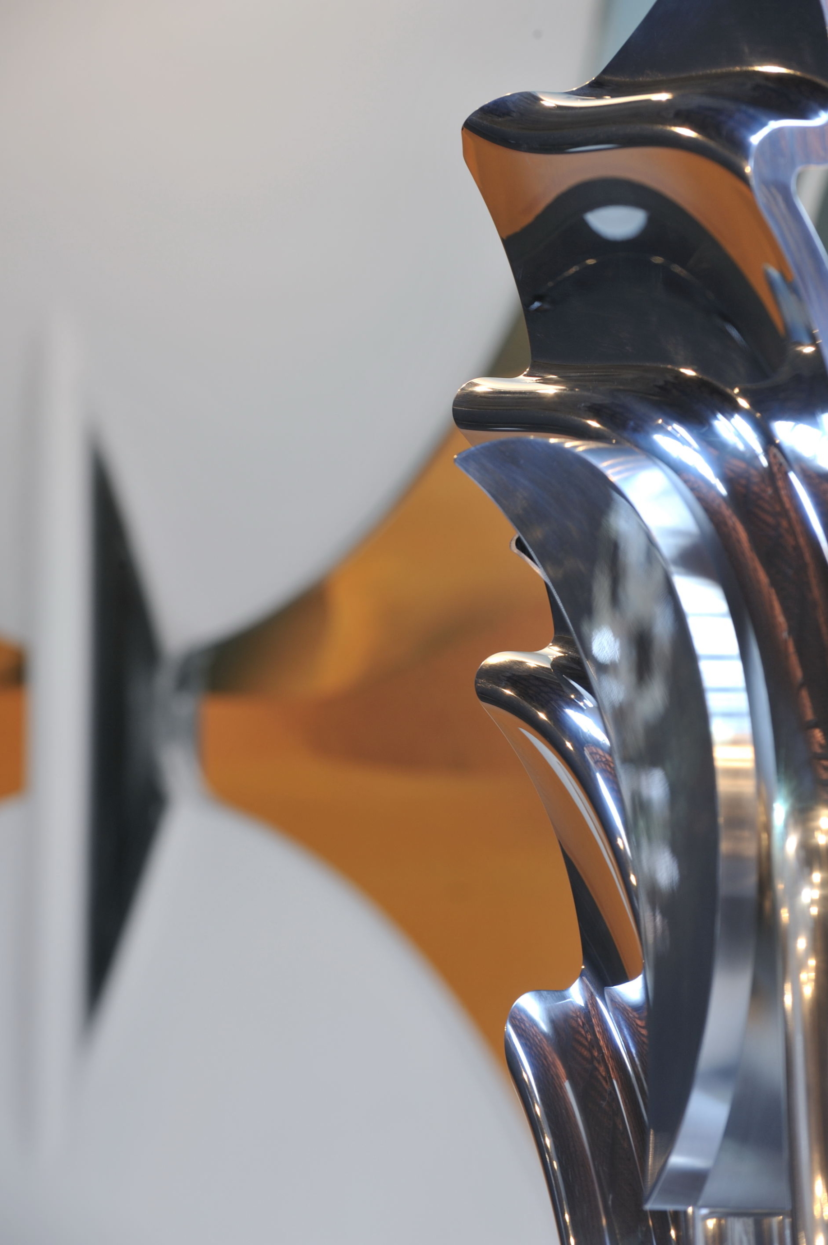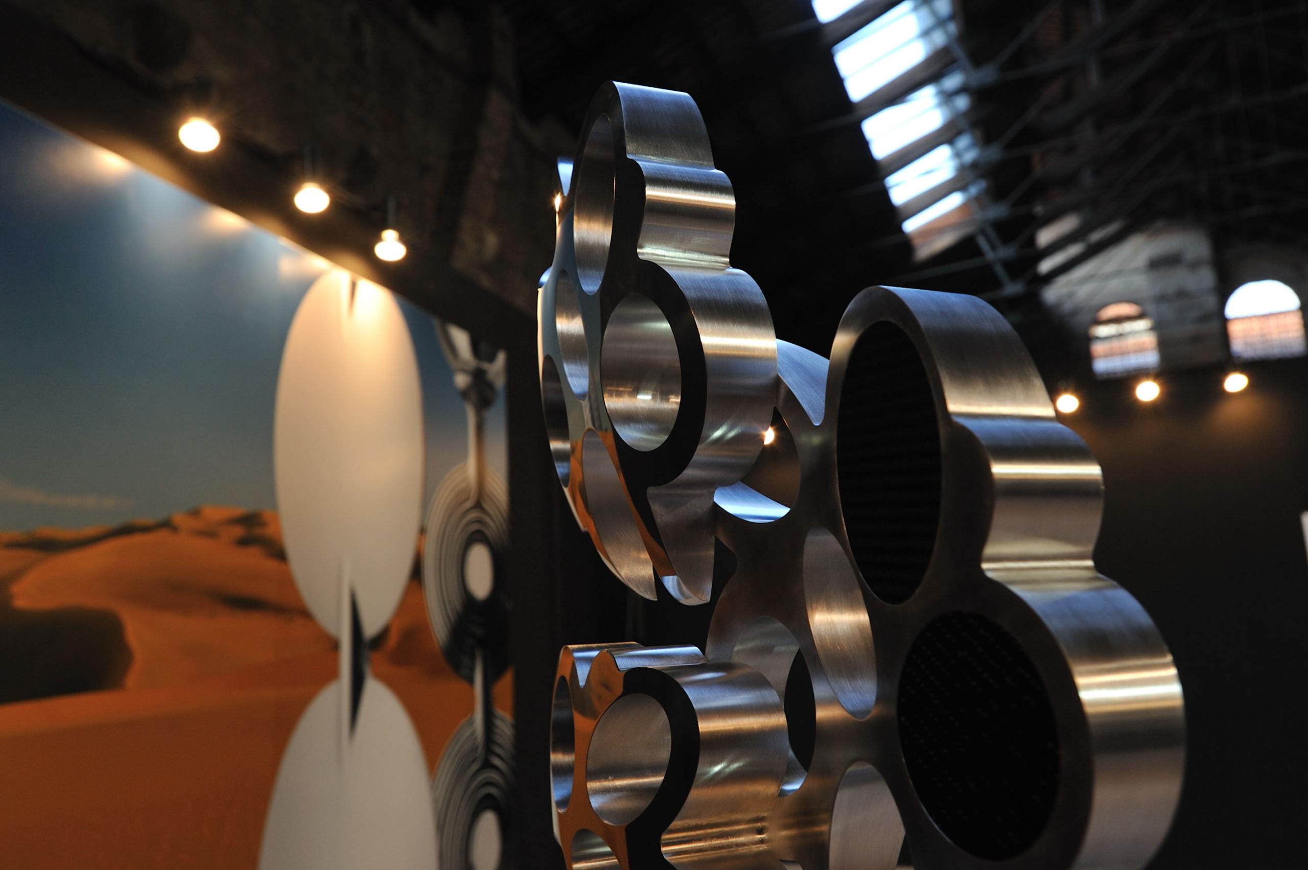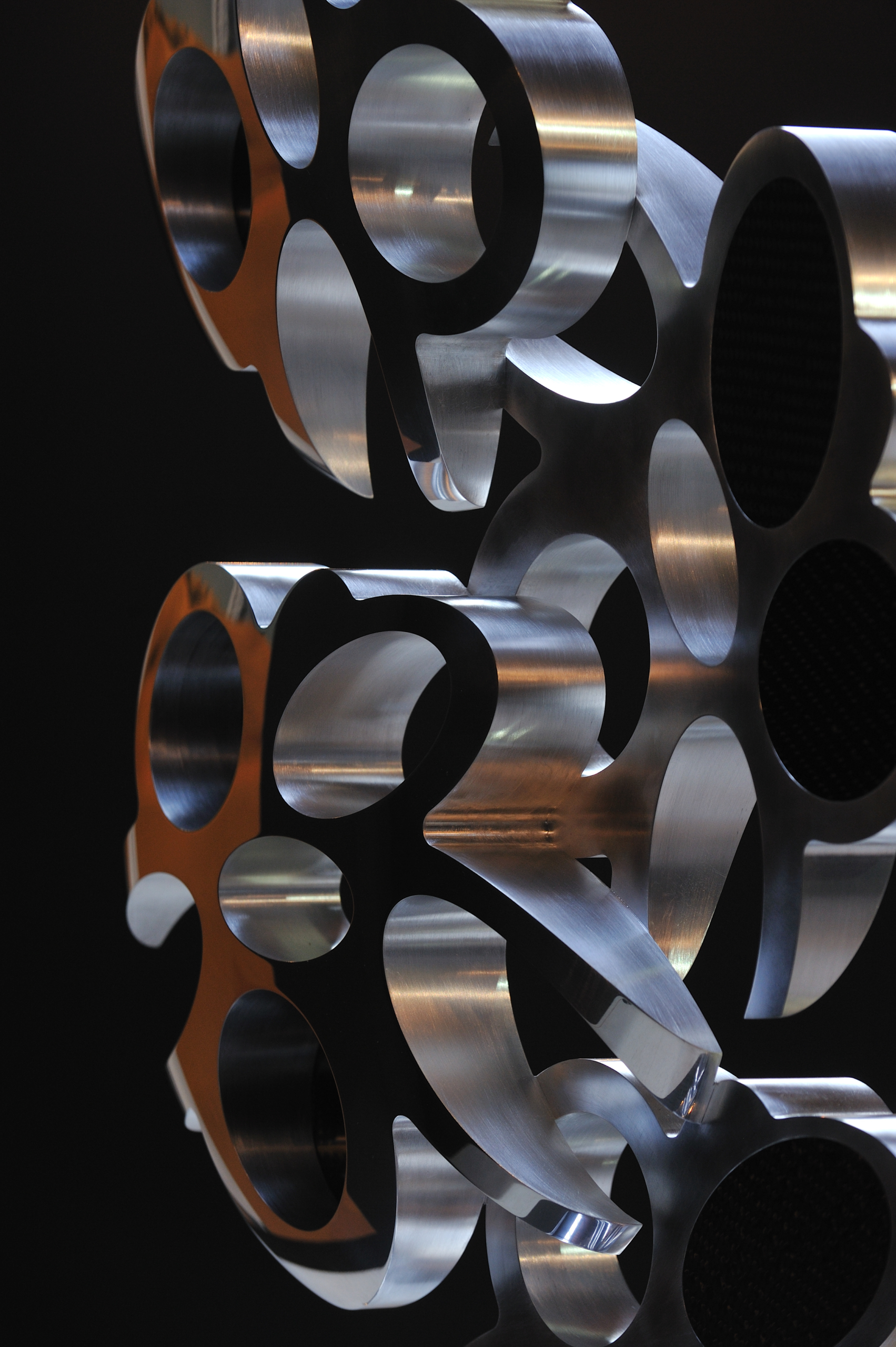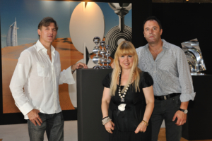 Nell’installazione di MVartindesign, “Nel segno del design, della luce e dell’amore”, gli artisti Angelo Morucci e Mario Venturini ci fanno entrare come in un microcosmo ovattato e multisensoriale di essenze, suoni e sculture lucenti come stelle nella notte dove il punto focale è Cosmo la scultura inserita nel deserto di Dubai con in lontananza la celebre Vela di Tom Wright. Sculture realizzate con leghe speciali e carbonio, utilizzando processi di alta tecnologia della Formula Uno e dell’Aerospaziale.