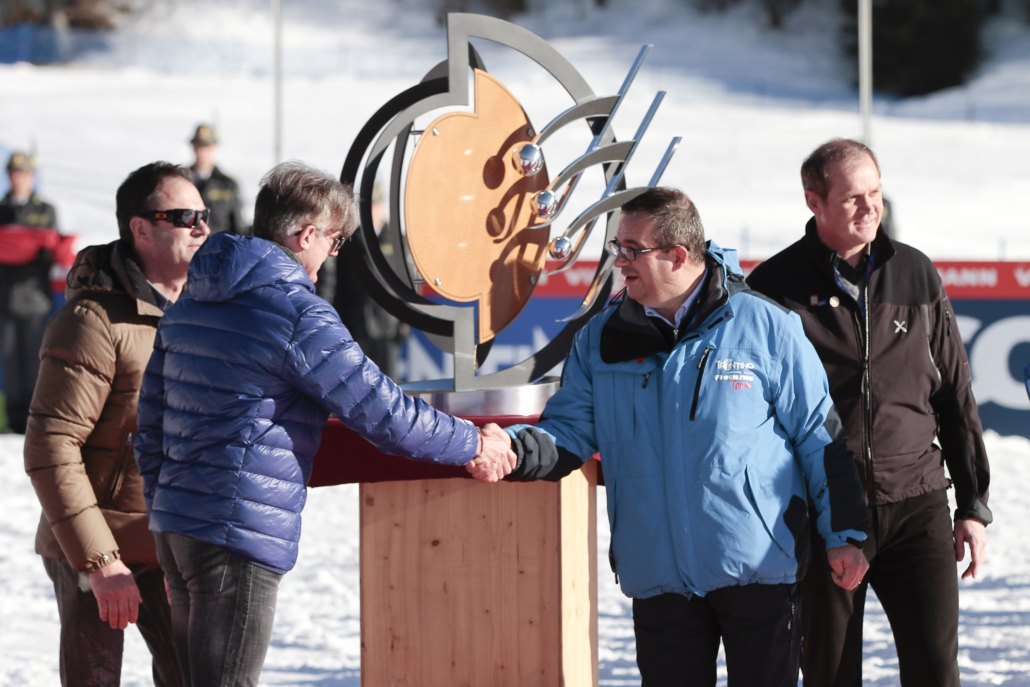 A chiusura dei Mondiali, l’opera principale “Chi scia sa volare” è stata ufficialmente consegnata alla Federazione Internazionale di Sci (FIS), trovando la sua collocazione permanente presso il Museo della FIS a Oberhofen, in Svizzera – un simbolo duraturo dell’incontro tra arte, sport, territorio e innovazione.
