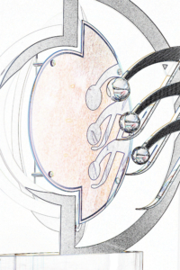 Al centro poi la “cassa di risonanza” in abete selezionato della Val di Fiemme, ideata da Fabio Ognibeni ( Opere sonore ) , è magico amplificatore di suoni inimitabili, omaggiati nei secoli dagli “Stradivari” e dai “Guarneri del Gesù” costruiti con lo stesso legno natio della valle.