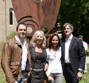 Giardino del Museo agli Eremitani Padova, da sinistra: Mario Venturini, la curatrice del Museo Franca Pellegrini, la responsabile dei restauri del Museo Antonella e Angelo Morucci